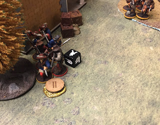 And then some sneaky Engagés suddenly appear behind the Flibustiers (I might have sort of forgotten that they were there...), and one man falls in the open street.